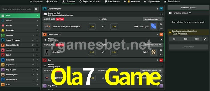 O Ola7 Game oferece uma grande seleção de opções de apostas em e-sports com probabilidades competitivas